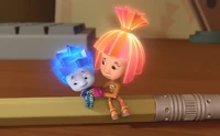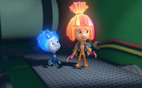 Часто Файер играет в игрушки ДимДимыча вместе с Ноликом, даже пытался запустить Нолика в космос. Хорошо, что Симка отвлекла быстрого фиксика и позвала Папуса на помощь. После этого случая, Файер стоял в углу вместе со своим другом.